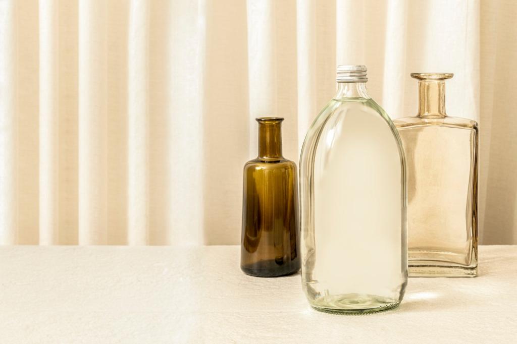 Untersetzer mit Filz, Tropfwannen und regelmäßiges Abwischen verhindern Wasserflecken. Lüfte nach dem Gießen, damit Luftfeuchte stabil bleibt. Eine kleine Hygrometer‑Ecke hilft, Schimmel zu vermeiden und sowohl Möbeln als auch Pflanzen gerecht zu werden.